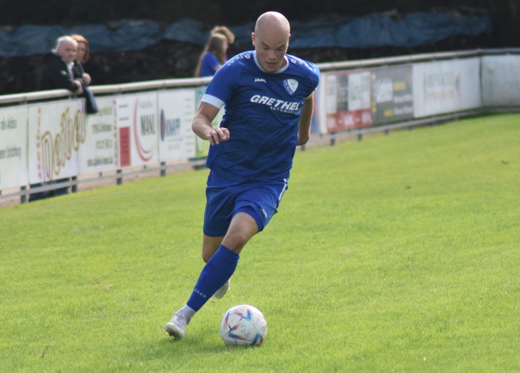 Apropos Pleiten: Mit zwei davon war Team 1 in die Spielzeit eingestiegen, nun gelang mit einem 3:1 in Sasbachwalden bereits der dritte Sieg in Serie und die endgültige Wende nach einem schwachen Saisonstart. Steven Müller brachte seine Mannschaft im ersten Spielabschnitt mit einem verwandelten „Elfer“ verdient in die Pause, und als Mirco Koch nach dem Wechsel und einem bis dahin souveränen Auftritt auf 0:2 erhöht hatte (55.), schien alles auf einen sicheren Erfolg hinauszulaufen. Mit dem Anschluss durch Goalgetter Herkert wurde es dann nur noch einmal kurz spannend (75.) in der Allde-Gott-Arena, ehe Ruben Thaller (Foto) mit dem 1:3 die Hoffnungen des SVS nur wenige Zeigerumdrehungen später wieder komplett erstickte.