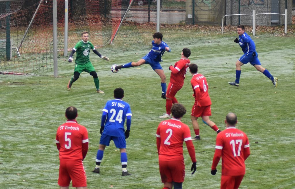 Eigentlich hätte dem SV Ulm die frühe Führung durch Kevin Brand (6.) beim SV Vimbuch komplett in die Karten spielen können, doch eine deutlich zu hoch stehende Defensive ermöglichte den Gastgebern immer wieder sehr viel Raum für einfache, lange Bälle, mit der die Ulmer Abwehrreihe ein ums andere Mal überrumpelt wurde. Der Ausgleich durch Steven Prosovski (11.) ließ nicht lange auf sich warten, und bis zur Pause vergaben die Hausherren noch weitere klare Möglichkeiten, die fast durchweg von Lukas Justus im SVU-Gehäuse entschärft werden konnten. Kurz vor der Pause war dann auch er machtlos, als erneut Prosovski mühelos einschob. Der Vimbucher Stürmer avancierte dann in der 80. Minute zum Spieler des Tages, als er nach dem zwischenzeitlichen Ausgleich von Mirco Koch (75.) per Kopfball den Siegtreffer markierte und den Gastgebern den so lange ersehnten Erfolg gegen den SV Ulm bescherte. Der größere Wille und schnörkelloser Fußball bei eher schwierigen Platzverhältnissen waren an diesem Tag die entscheidenden Faktoren für den knappen Derby-Erfolg.